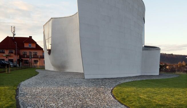a zřasený povrch pro podporu plasticity. Uvnitř tak tvoří akustickou pohodu.