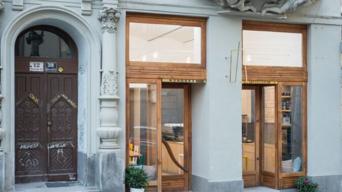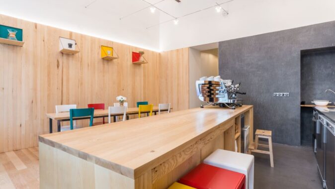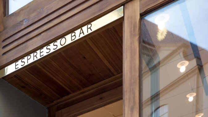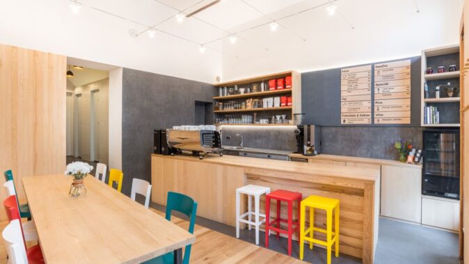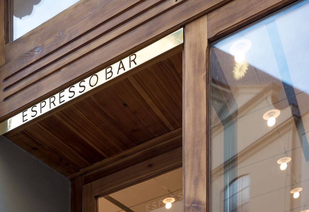 Denní espresso bar byl navržen v památkově chráněném domě na