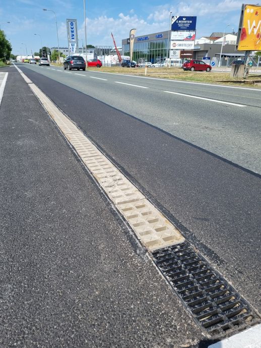 Monolitické žlaby bez štěrbin pro bezpečnost cyklistů