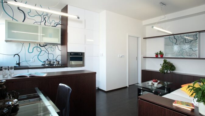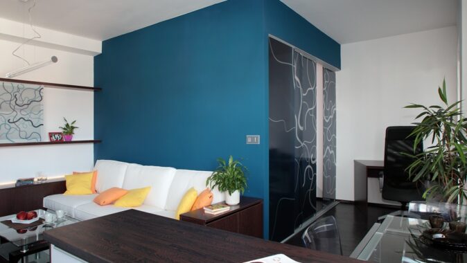 pak byla vystavěna příčka, která vymezila ložnici v prostoru obývacího pokoje.
