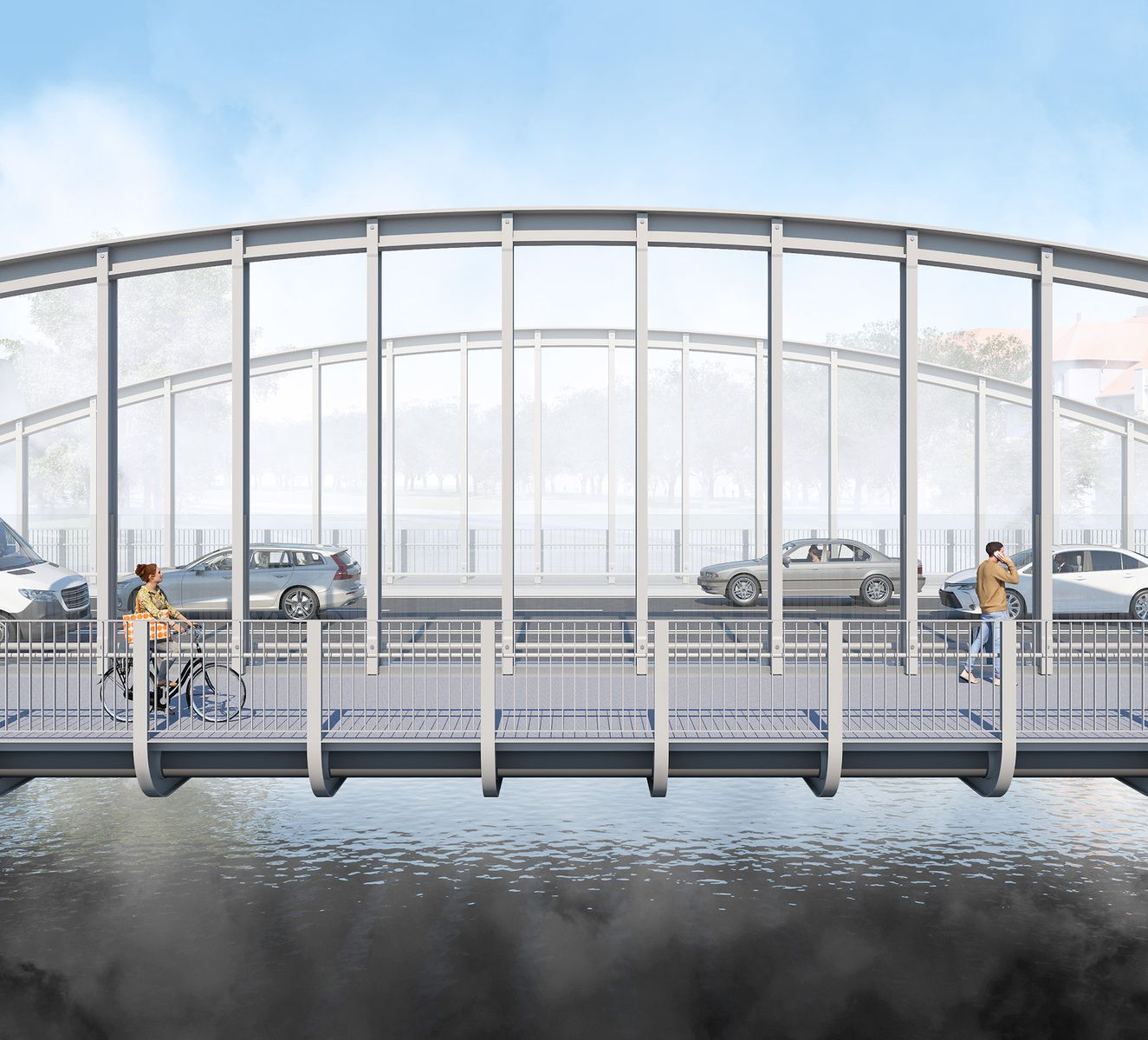 Soutěž byla vypsána jako otevřená a dvoufázová a návrhy hodnotila porota složená ze zástupců kraje a nezávislých odborníků. Mezi nimi byli architekti Ladislav Kuba, Jan Pačka, Eva Kovaříková a Luboš Zemen a dále odborníci na mostní konstrukce Tomáš Rotter a Michal Drahorád ze stavební fakulty ČVUT. Na druhém místě se umístil návrh od kanceláře REFUEL a na třetím návrh od sdružení RUSINA FREI a BRIDGE STRUCTURES.