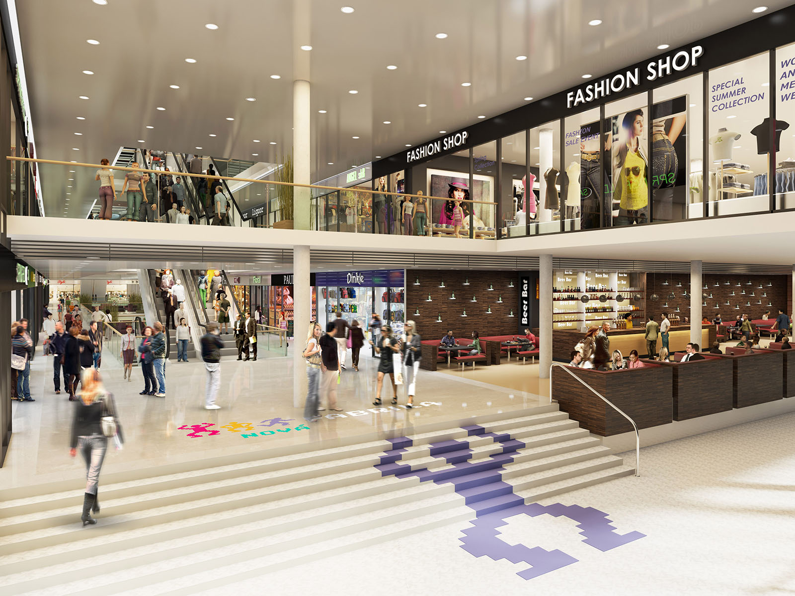 Centrum bude mít asi 70.000 metrů čtverečních. Budou v něm obchody, horní patra budou věnována sportovním aktivitám. „Předpokládáme, že zde najde své místo mnoho sportovních klubů a kroužků tak, aby nabídka obchodního centra byla doplněna sportovními a volnočasovými aktivitami. K tomu je přizpůsobena i kapacita parkovacích míst. V celém objektu bude asi 1000 krytých parkovacích stání,“ uvedl Jarolím.