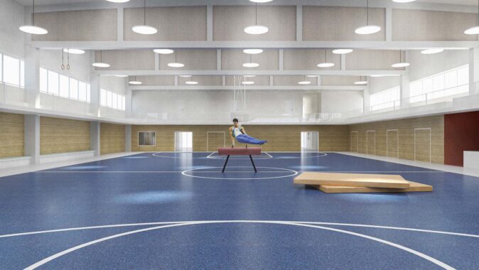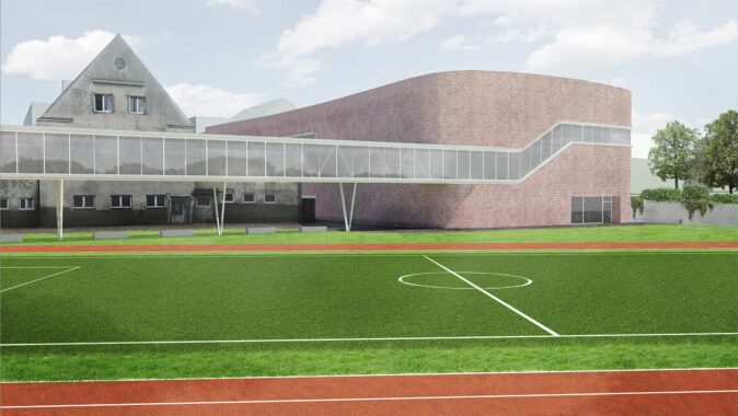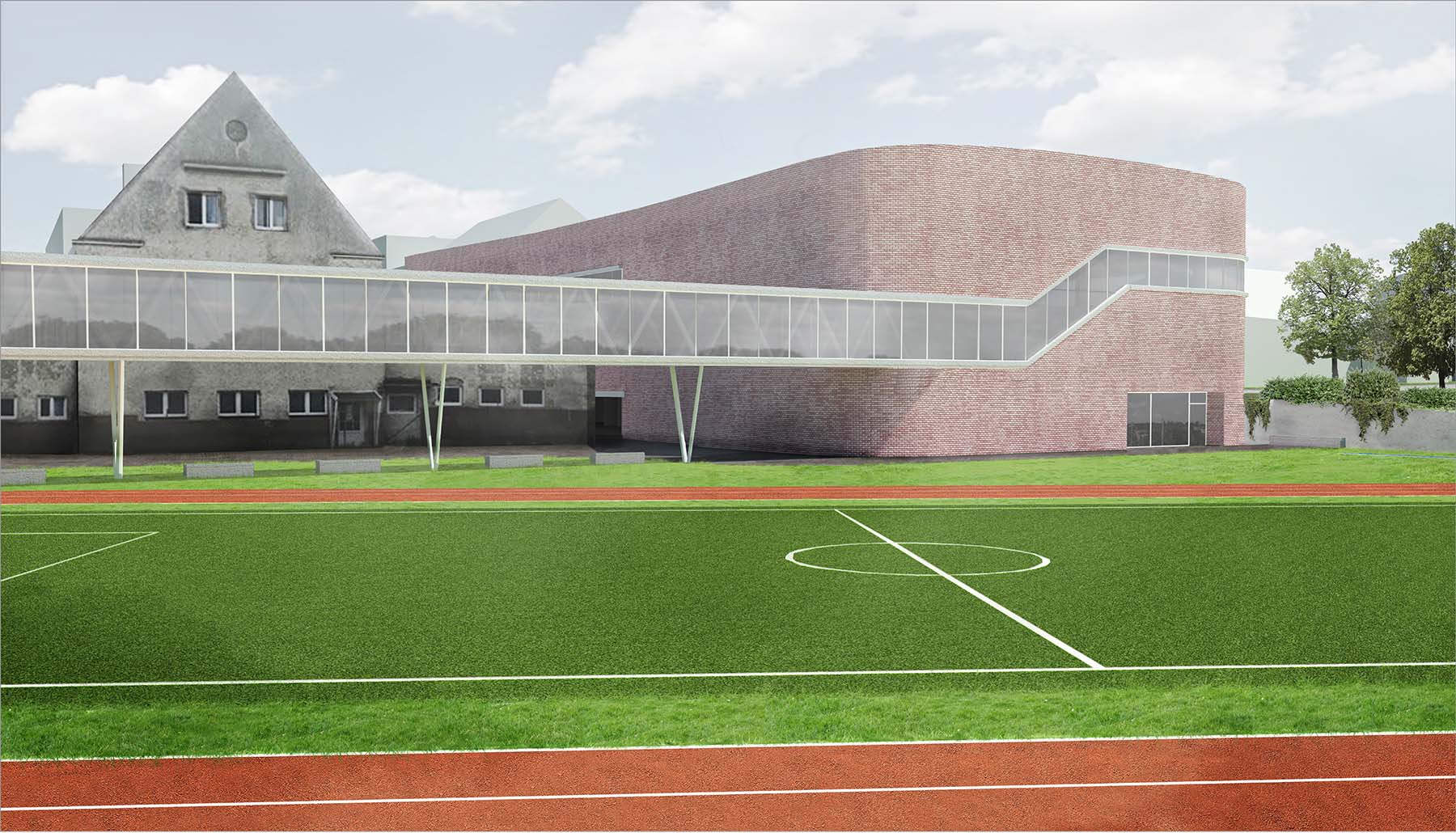 novostavby sportovní haly s venkovním sportovištěm v blízkosti Základní