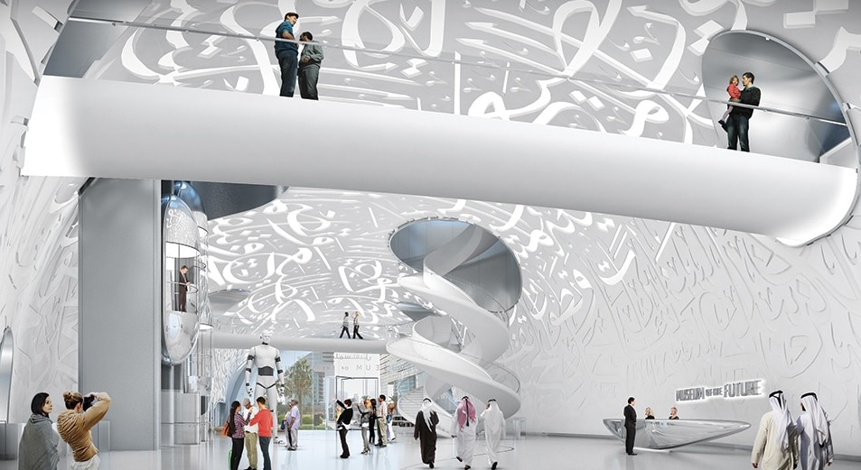 Ta se staví nedaleko komplexu Emirates Towers, má tvar oka (přesněji anuloidu) hledícího do budoucnosti a její futuristickou fasádu z korozivzdorné oceli mají pokrývat kaligrafie v arabštině. Muzeum se bude rozkládat na ploše téměř 2 800 m2 a jeho realizace vyjde na 136 milionů dolarů. Na sedmi podlažích se předvedou inovativní a futuristické koncepty, služby a výrobky zaměřené na města, zdravotnictví a vzdělávání budoucnosti. V budově budou navíc i laboratoře a přednáškový sál pro 400 lidí.