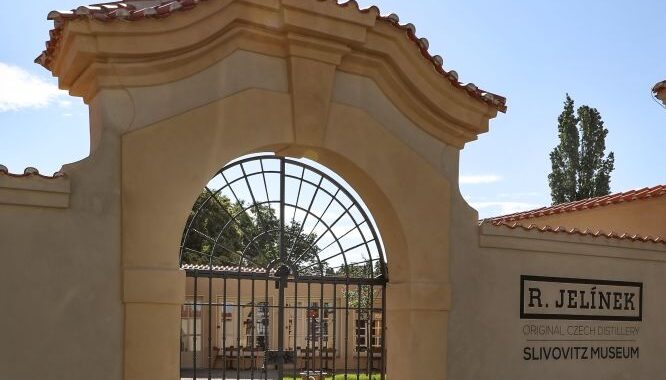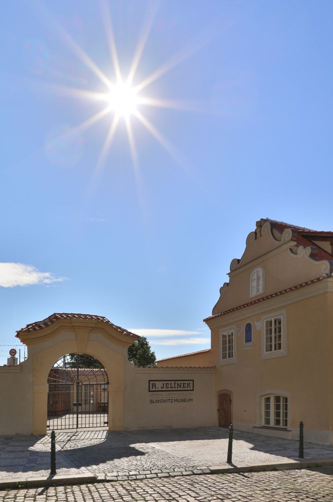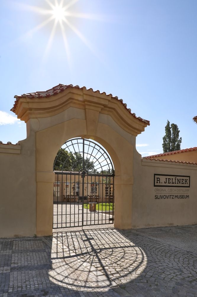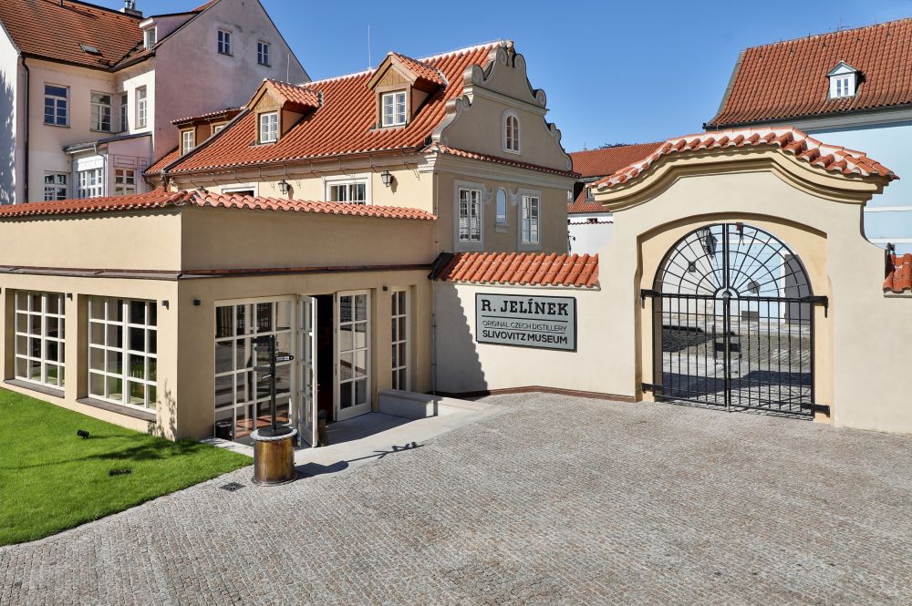 podzemním podlaží je expozice o historii firmy a výroby ovocných destilátů v