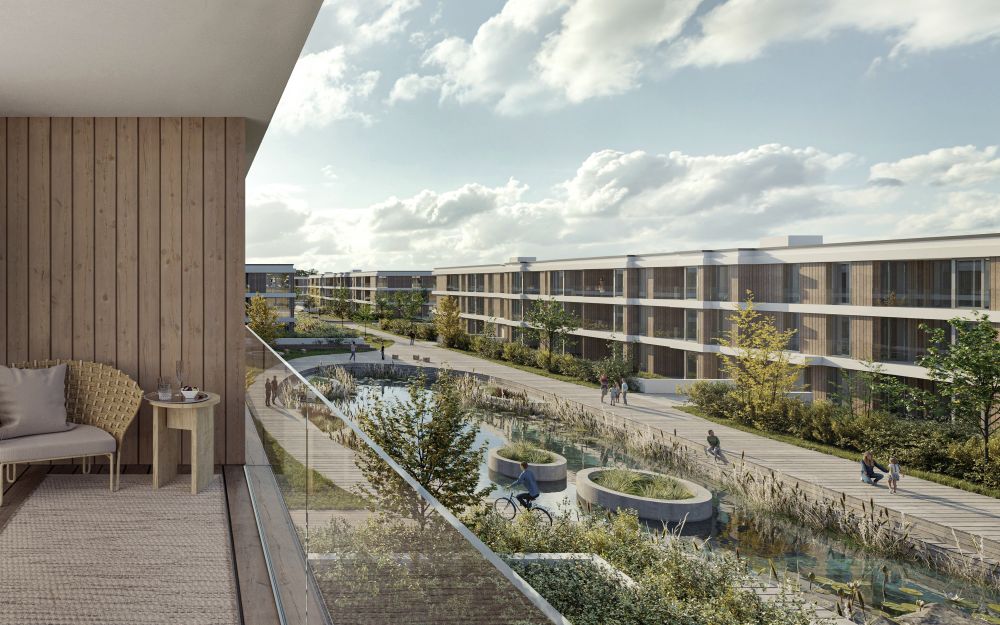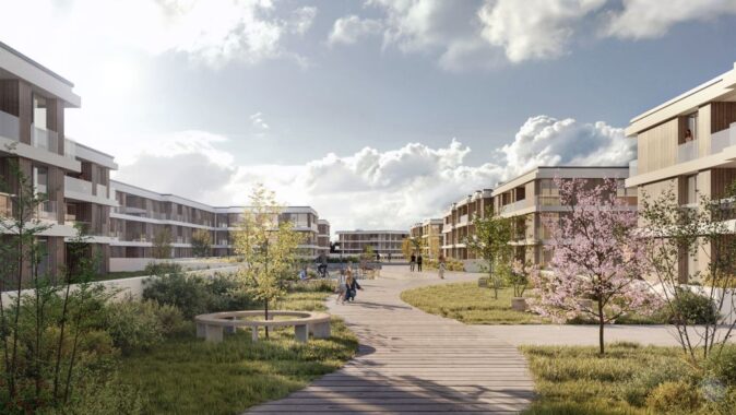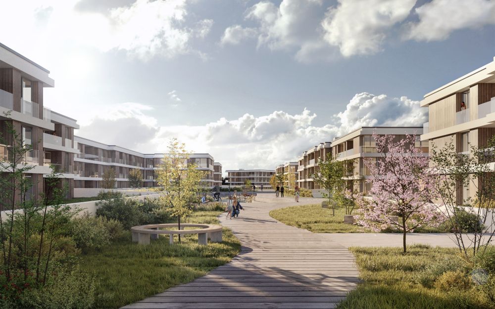 čtvrť bytových domů inspirovanou severským stylem bydlení. Za projektem stojí