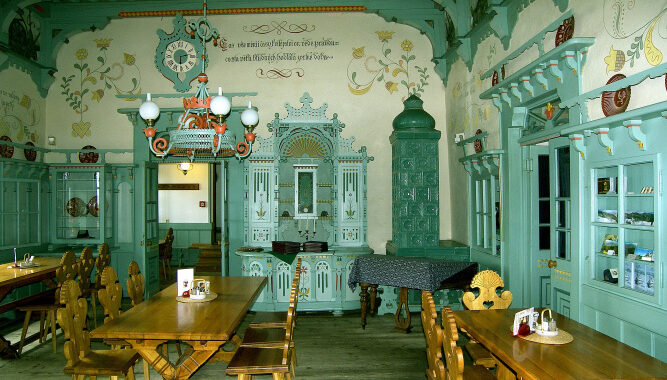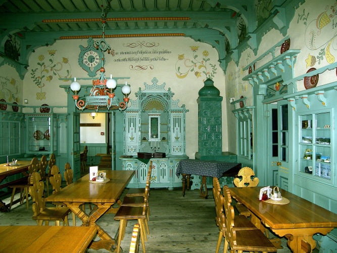 Nejkrásnější jídelna Libušín byla pojmenována k poctě české kněžny Libuše. Interiér byl vyzdoben freskami a sgrafity s motivy valašských a slovenských pověstí dle návrhů Mikoláše Alše. Portréty provedl akademický malíř Karel Štapler. K unikátům interiérů patřily tři secesní lustry, příborník, skleník a hodiny. Kolem stolů bylo umístěno sto vyřezávaných židlí. Podle odborníků patří Libušín k nejcennějším dílům, která architekt Jurkovič navrhnul.