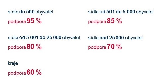 • minimální výše způsobilých nákladů na jeden projekt je 1 mil. Kč, maximální výše podpory pak 50 mil. Kč