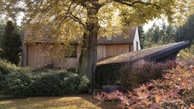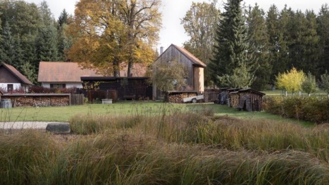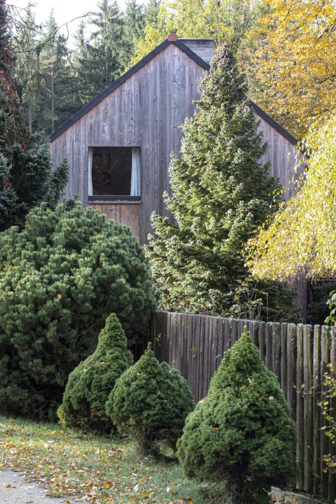 Dům se nachází v krajině jižních Čech. Původně sloužil jako zděný pilířový dřevník hospodářského stavení hájovny, v 70. letech minulého století byl přestavěn na chatu. Zadáním bylo její zvětšení a zvýšení uživatelského standardu. Síla výhledu na hladinu rybníka ovlivnila tvar přístavby s pootočeným štítem a velkým oknem. Okno je nekonečně měnícím se obrazem a příroda jeho malířem. Mírné zalomení domu navazuje na zakřivení cesty. Velikost domu umožnuje nyní setkávání početné rodiny.