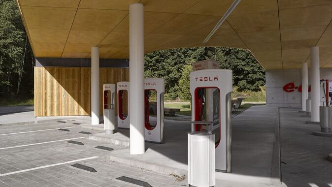 počet nabíjecích stojanů, z nichž šestice pro elektromobily Tesla musela být