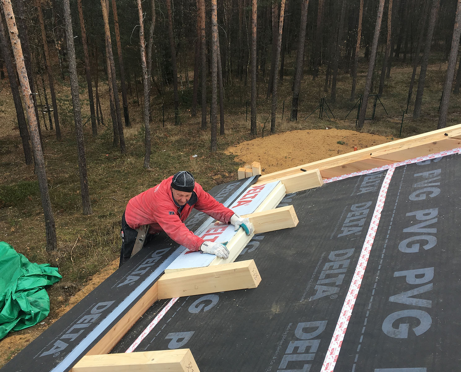hodnotou Sd 30 m. Po dokončení pokládky PIR desek a střešní