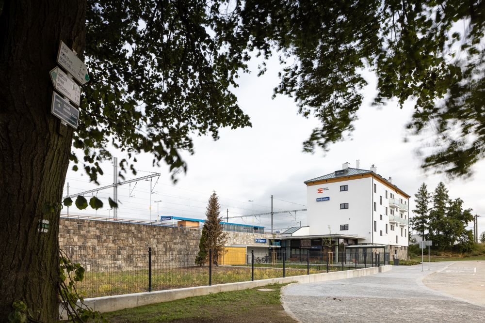 Projekt řešil nové prostory pro veřejnost – čekárnu a veřejné WC, součástí rekonstrukce bylo i oddělení podchodu od venkovního prostředí, nová keramická dlažba na podlaze a keramický obklad na stěnách. Na pozemku, uvolněném demolicí původní výpravní budovy, jsou nové zpevněné plochy, zelené plochy, krytá stání pro kola a sklad pro přilehlou zahrádku. Veřejně přístupné plochy jsme řešili jako bezbariérové.