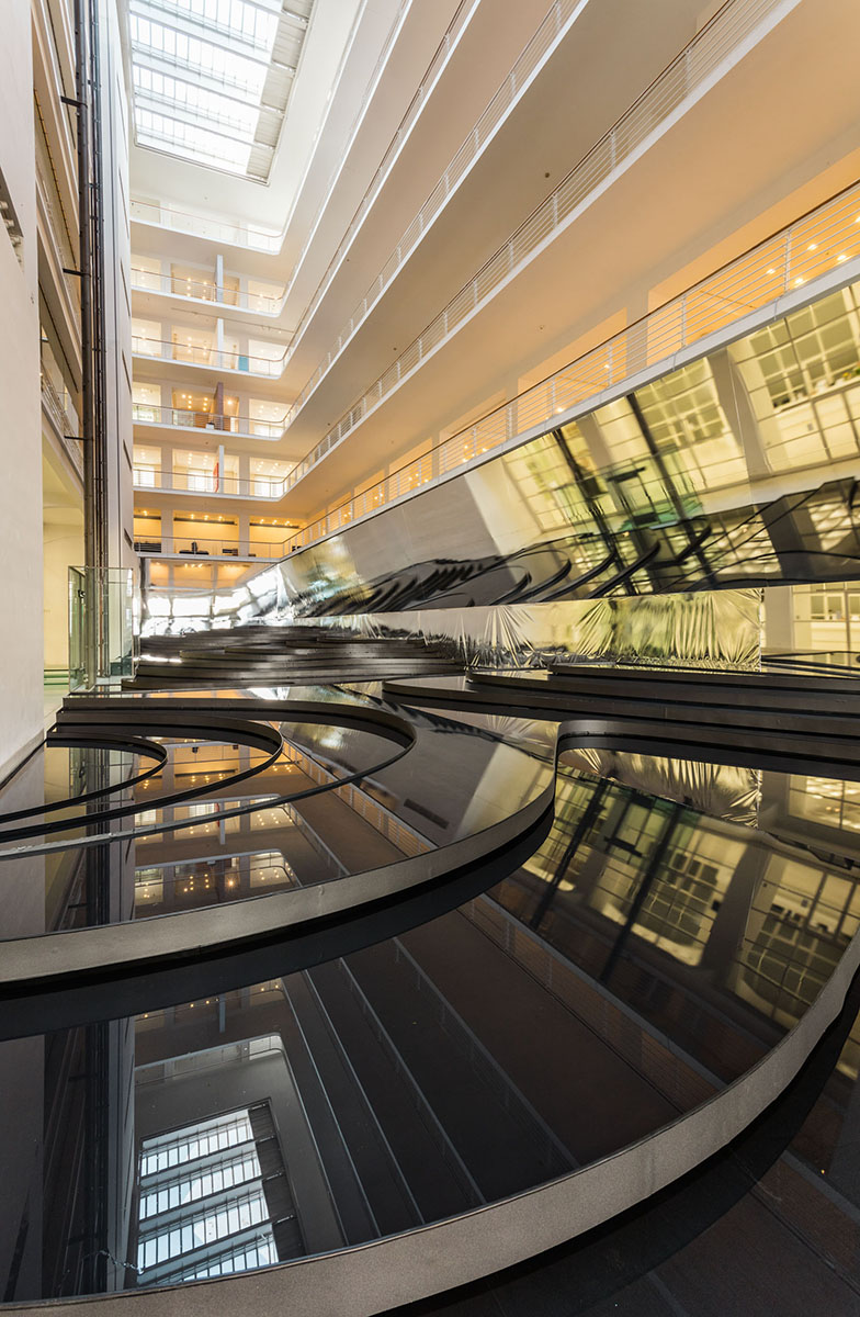shlédnout v přilehlém mezaninu paláce. Dílo Dotek doby se simulací vrstevnic a laserovými paprsky