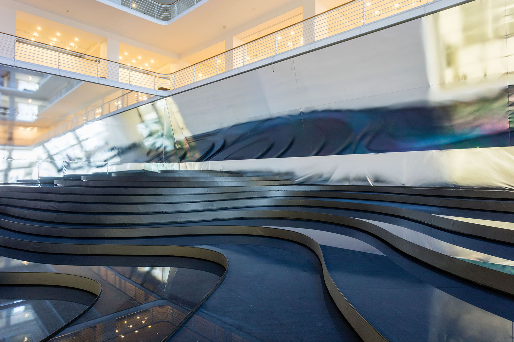 Velkolepého odhalení se rovněž dočkala Malá dvorana Veletržního paláce. Svoji rozsáhlou instalaci Dotek doby pro ni připravila světově