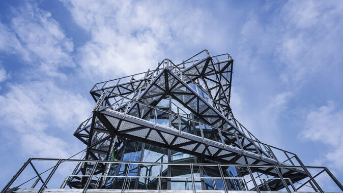 dvacetimetrové válcové nástavby – vyhlídkové věže s multifunkčními prostory.