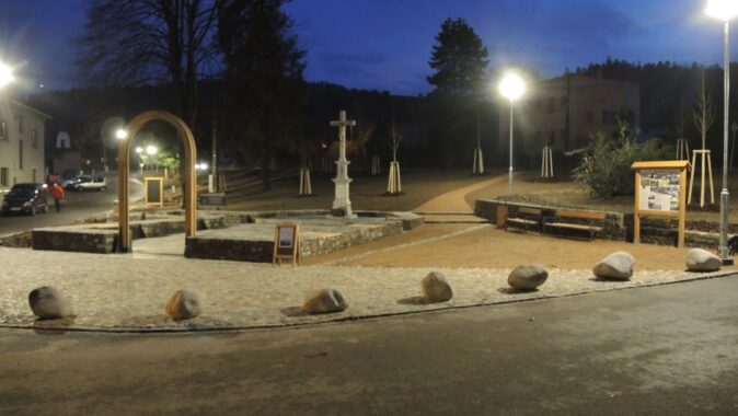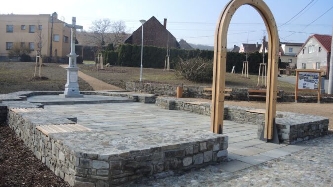 stávajících i nových prvků drobné architektury a mobiliáře (kříž, pamětní deska
