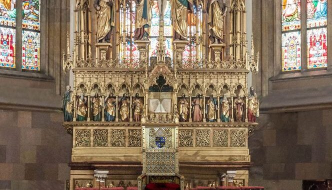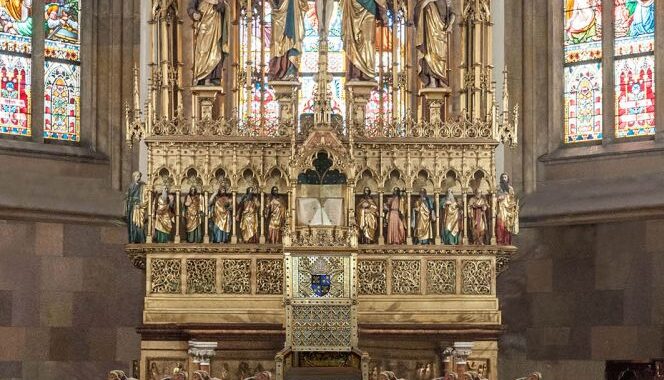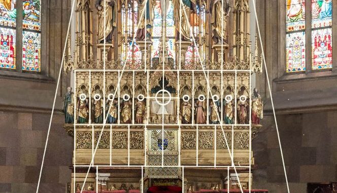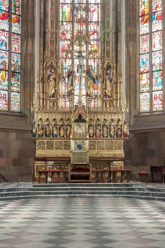 |Kubistické |pojednání menzy má velké měřítko, je příliš výrazné a odpoutává pozornost od hodnot historického pozadí a patrně i od obřadníka, které mají být významnější.