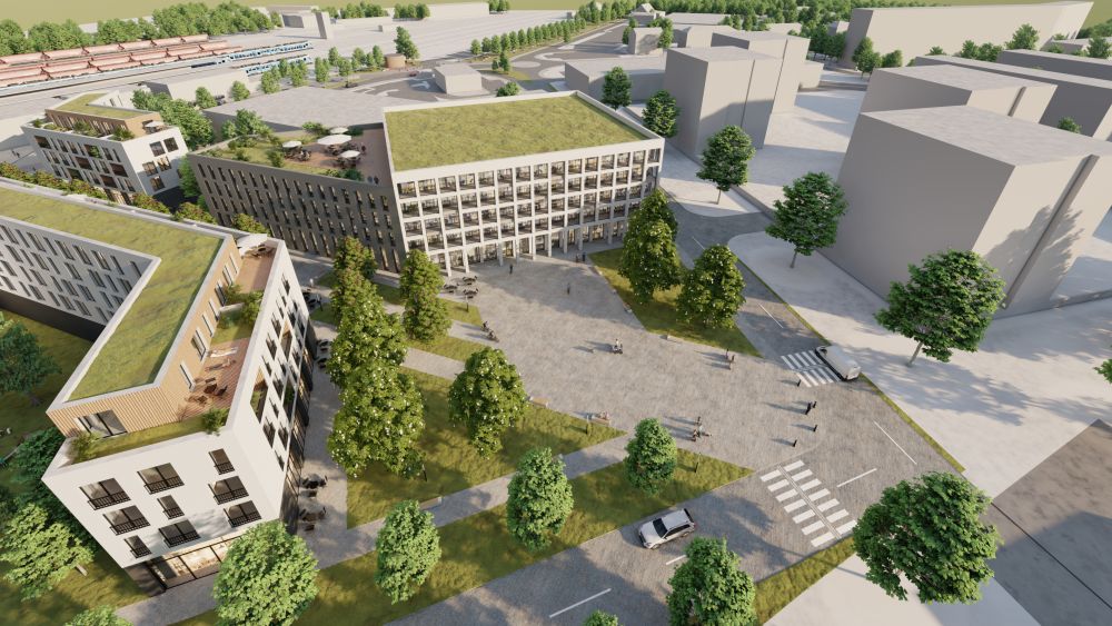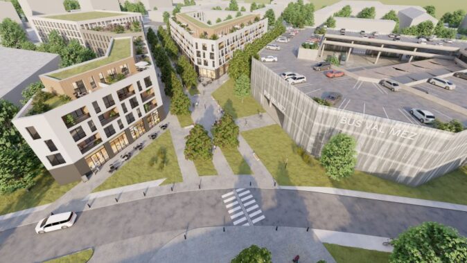 Kromě infrastruktury, která usnadní a zpřehlední dopravní situaci v lokalitě, jsme navrhli také budovu městského úřadu, dopravní terminál se střešním parkingem, park a kompozici bytových domů se zelenými terasami a aktivními partery, kde jsou obchody, služby, restaurace a kavárny. Nová architektura svým měřítkem i půdorysným řešením navazuje na zástavbu sídliště Křižná. Vytvoří působivou bránu do města s přitažlivým veřejným prostorem.