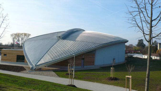 Architektura sportovně rekreačního areálu připomíná i jeho předchozí využití, kdy zahrada sloužila jako zásobní sbírka dřevin pro sychrovský zámek. Areál s velkým podílem dřeva je ukázkou organické architektury, například zimní stadion je ve tvaru listu.