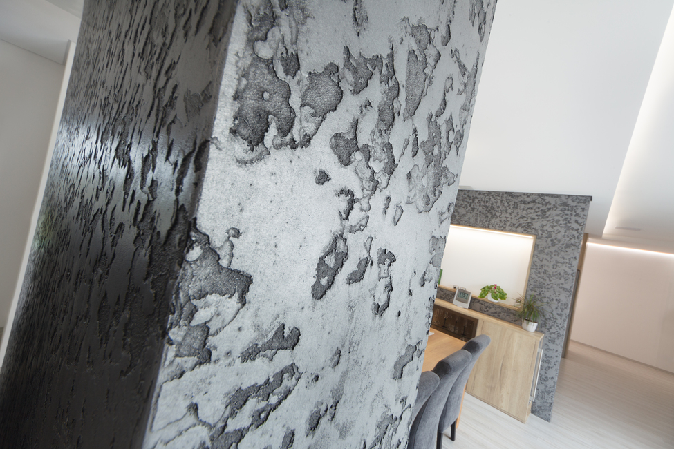 Je to hlazená stěrková omítka s výraznou plastickou strukturou. Na výběr je široká škála odstínů, například ve světlých neutrálních tónech, které vytvoří vzhled přírodního kamene. Velmi žádané jsou pak také tmavší metalické odstíny, které je možné probarvit působivými efekty a tím zvýraznit kresbu.