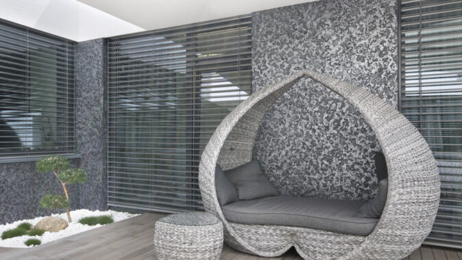 GRANITE se také hodí do minimalistických interiérů, jako vyvážení jisté strohosti a dodání opulentnosti čistým geometrickým designům. Vhodně se kombinuje s Betonepoxem® nebo Imitací betonu®, což jsou stěrky, které navozují dojem chladného nadčasového betonu. Šité na míru dynamickým, moderním a nadčasovým interiérům či exteriérům. Na trh je před lety uvedla společnost NĚMEC s.r.o., která oba materiály v průběhu posledních let doladila tak, že jsou na trhu nepřekonatelné jak díky své eleganci, tak díky odolnosti a životnosti.
