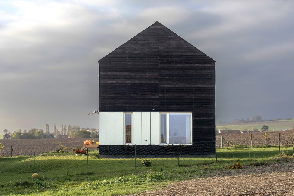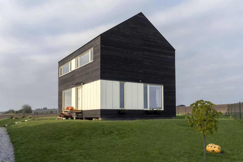 dům Vítek. Zachovává požadavek dané lokality na sedlovou střechu, přesto má