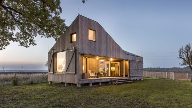pro výstavbu víkendového domu, který je řešen jako jeden obytný prostor s dvěma