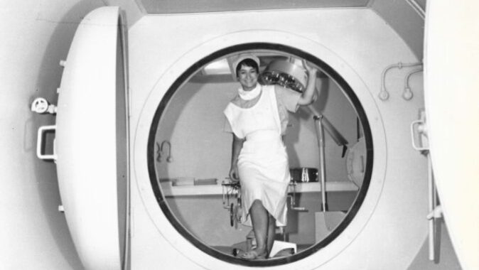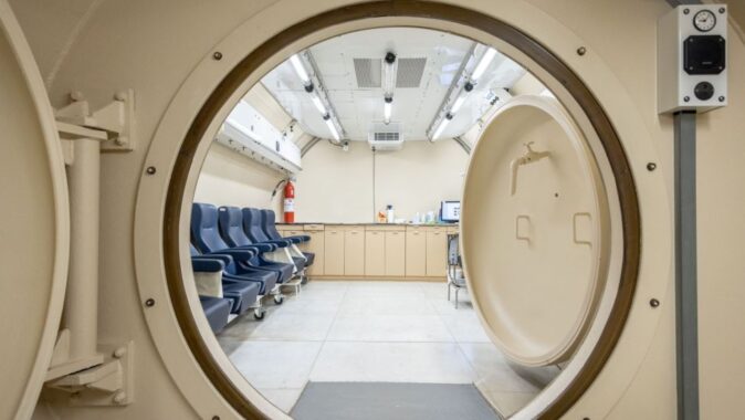 Hyperbarická komora je velké tlakové zařízení, ve kterém pacienti pomocí speciálních masek dýchají 100 % čistý kyslík. Zvýšení koncentrace kyslíku v těle pomáhá pacientům, kteří trpí chronickými chorobami, zánětlivými onemocněními nebo utrpěli akutní drtivá poranění končetin.  Typicky se v ní léčí lidé po otravě oxidem uhelnatým. Denně se zde vystřídá asi 40 pacientů.