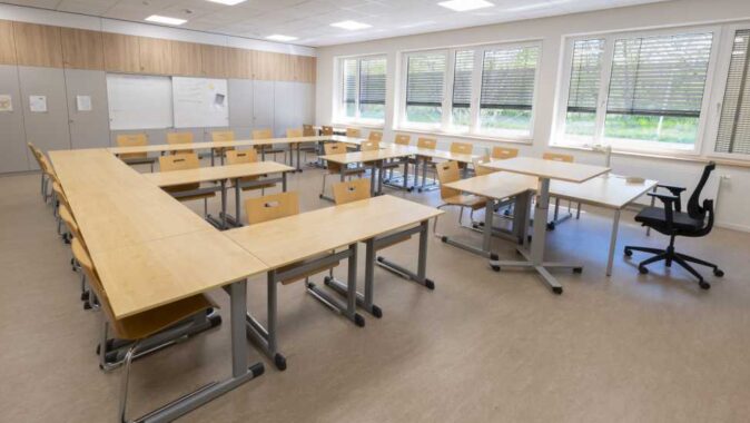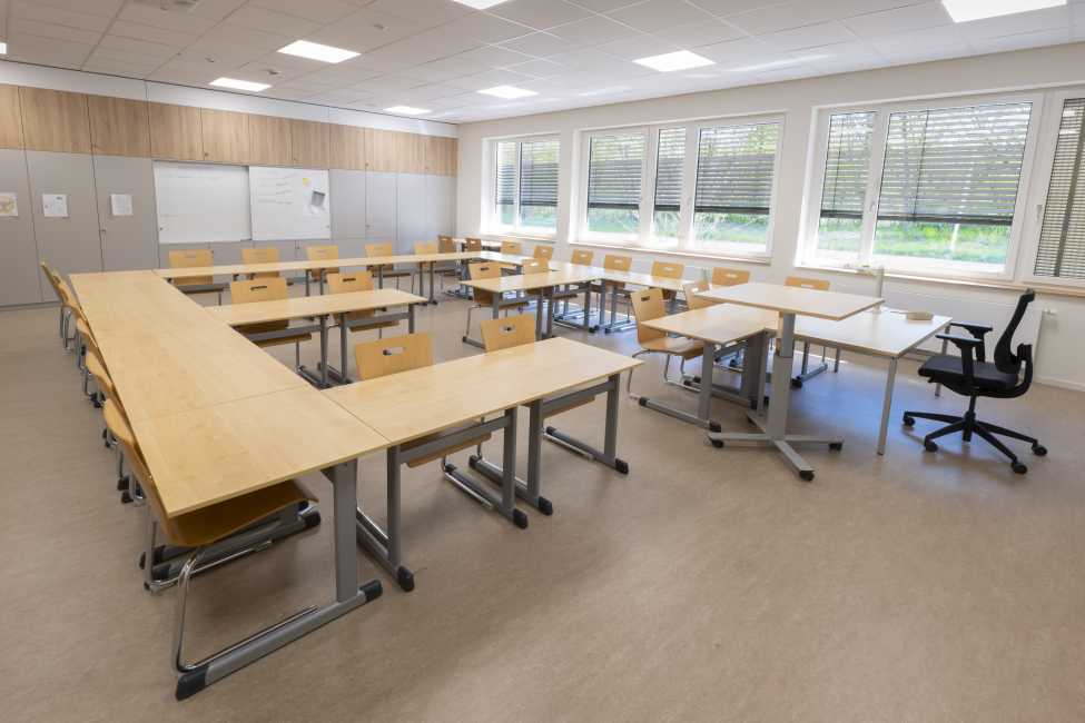 Dvě třípatrová křídla budovy jsou určena pro výuku I. stupně gymnázia. Architektonický koncept je pojatý tak, že v každém podlaží jsou umístěni studenti jednoho ročníku. Čím vyšší patro, tím jsou studenti starší. V každém patře na začátku chodby, ve které jsou umístěny učebny, je individuálně zařízená a univerzálně využívaná společenská místnost, tzv. „homebase“. Je to „domov ročníku“, který tuto místnost využívá ke komunikaci, skupinové práci nebo k relaxaci a „odreagování“. Slouží také jako další studovna, kterou lze využít během vyučování. V nové budově gymnázia jsou učebny zvláště velké, každá s plochou 80 m². Díky tomu lze uspořádání stolů a židlí přizpůsobit různým potřebám. Je zde prostor pro skupinovou práci, prezentace i třídní aktivity.