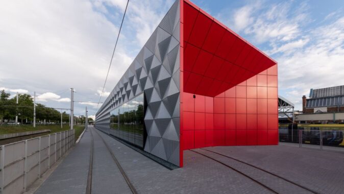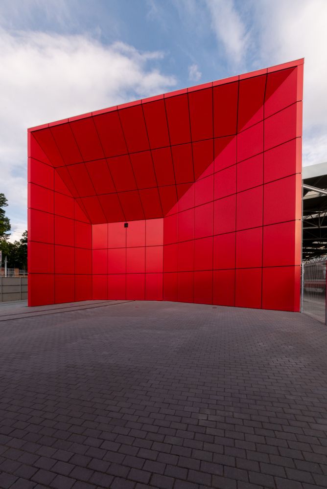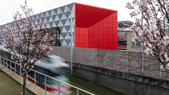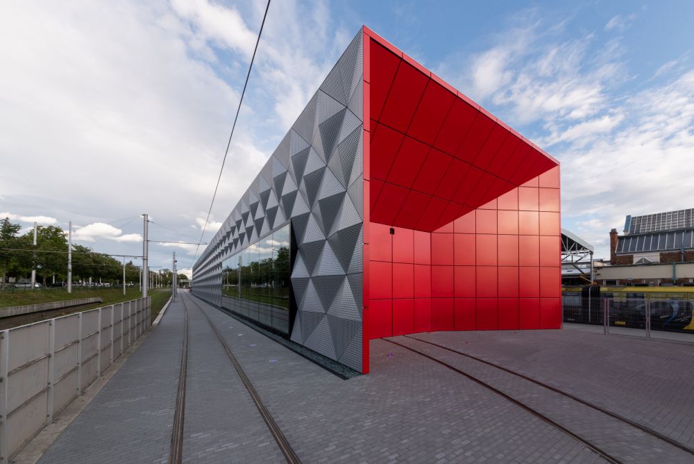 limitem návrhu její fasády do ulice bylo hlukové zatížení veřejného prostoru.