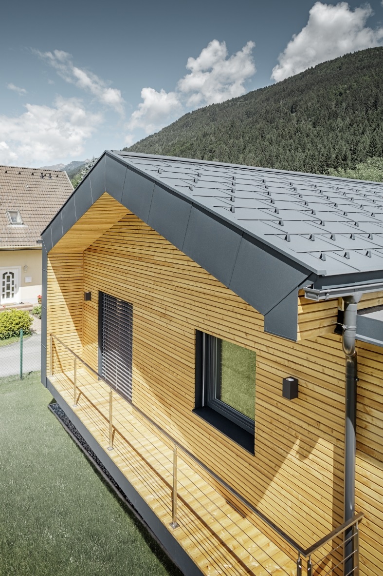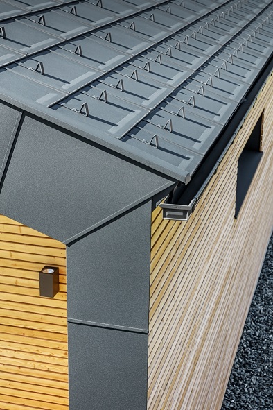 střechy byly použity střešní panely PREFA R.16. Pro Ladstättera to byla premiéra: „Drželi jsme se dispozic zadání a fungovalo