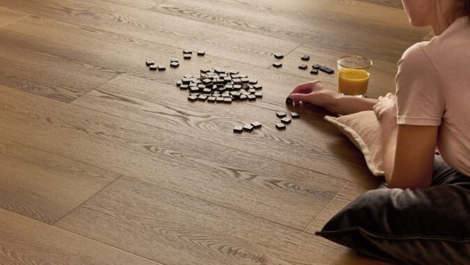 Vizuální přirozenost podlahy zvyšuje i již zmíněná technologie synchrostructure, která rovněž není standardem. „Technologie EIR – embosed in register – znamená, že to, co vidíme na fólii s dekorem, výraznou kresbu dřeva, imitaci kartáčování, to stejné je reálně přeneseno i do povrchu lamely. Pokud tedy vidím suk, tak přejedu-li po něm rukou, tak ho v daném místě i cítím, plasticita v tom místě koresponduje s dekorem na krytině. Nebývá to standardem, někteří výrobci to u krytin nerespektují, mají jednu univerzální povrchovou úpravu, nějaký gravír na povrchu lamely, bez ohledu na to, zda se jedná na pohled o čistý dekor nebo rustikální,“ vysvětluje Aleš Viktorin, čím se nová kolekce minerálních krytin Arbiton Woodric Eir posouvá o třídu výše.