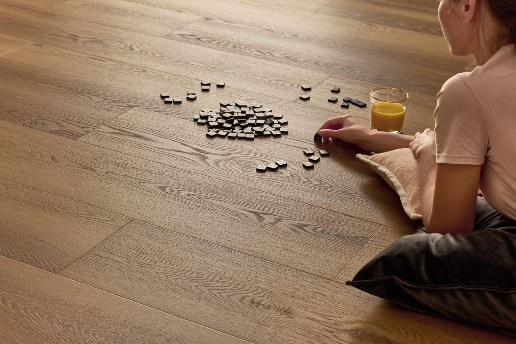 Vizuální přirozenost podlahy zvyšuje i již zmíněná technologie synchrostructure, která rovněž není standardem. „Technologie EIR – embosed in register – znamená, že to, co vidíme na fólii s dekorem, výraznou kresbu dřeva, imitaci kartáčování, to stejné je reálně přeneseno i do povrchu lamely. Pokud tedy vidím suk, tak přejedu-li po něm rukou, tak ho v daném místě i cítím, plasticita v tom místě koresponduje s dekorem na krytině. Nebývá to standardem, někteří výrobci to u krytin nerespektují, mají jednu univerzální povrchovou úpravu, nějaký gravír na povrchu lamely, bez ohledu na to, zda se jedná na pohled o čistý dekor nebo rustikální,“ vysvětluje Aleš Viktorin, čím se nová kolekce minerálních krytin Arbiton Woodric Eir posouvá o třídu výše.
