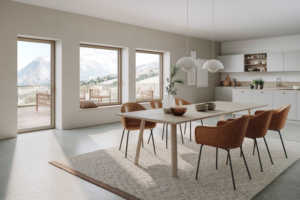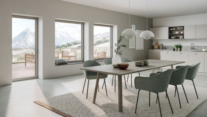 Interiérová strana profilů oken Schüco AWS WoodDesign nabízí sedm dubových dekorů: Pure, Natural, Walnut, Chocolate, Gris Beige, Savanna a Super White. Jiné povrchové úpravy jsou k dispozici na vyžádání.