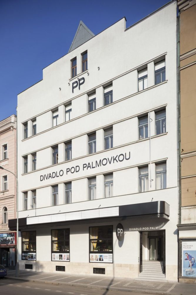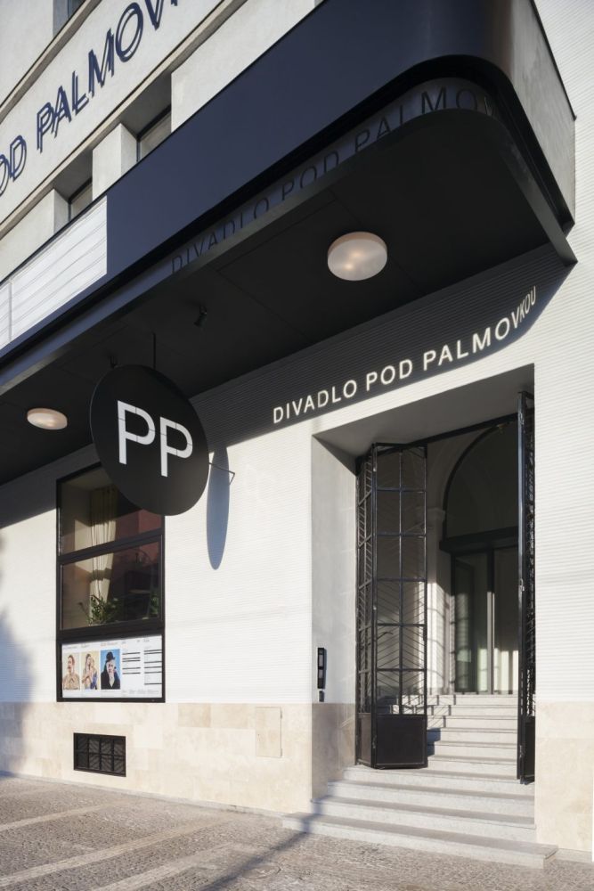 Rekonstrukce technologií umístěných ve sklepě se protáhla na více jak dva roky. To vše Palmovka přežila a v nové sezóně se rozhodla zrekonstruovat i vstupní prostory divadla včetně pokladny, kavárny a nové fasády. Vzhledem k dlouhé divadelní tradici budovy jsme se rozhodli výrazem fasády navázat na doby před rokem 1992 a výrazově sjednotili fasádu přízemí i vyšších pater do jednoho celku – budovy divadla. Celý parter má nyní jasnou a přehlednou podobu. Tu definuje světlá fasáda, čisté okenní otvory kavárny, otevřený vstupní portál schodiště a kovová markýza. Prvky v černé a bíle kombinaci jsou zjemněny zvlněným profilem omítky, geometrickými vzory vstupních mříží a přírodní strukturou travertinového soklu. V divadelní kavárně i pokladně se tato barevná kombinace opakuje v prvcích mobiliáře a osvětlení. Jasná a přehledná forma je patrná také v grafice, dramaturgii a především v celkovém výrazu divadla PP.