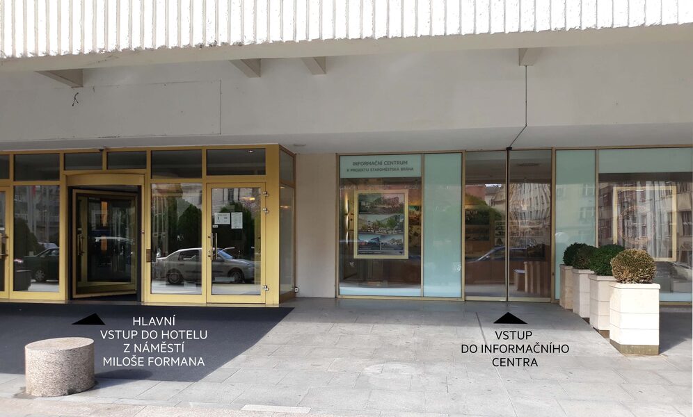 Infocentrum bude sloužit občanům a návštěvníkům Prahy 1 k detailnímu seznámení se projektem. Na srovnávacích fotografiích umístěných na infopanelech návštěvníci infocentra názorně uvidí, jakou proměnou brutalistní stavba a veřejné prostory kolem hotelu projdou.
