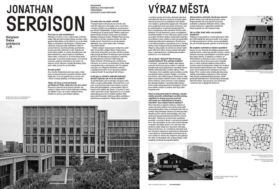 Publikace je tematicky rozdělená na dvě části Architektky a Jiná perspektiva– první se věnuje výrazným ženám v architektuře, jako jsou Liesbeth van der Pol z Nizozemska, Kate Otten z Jihoafrické republiky, Anapuma Kundoo z Indie, Annette Gigon ze švýcarského dua Gigon Guyer nebo městská architektka Kodaně Tina Saaby a další. Druhá, obsáhlejší část představuje významné, převážně evropské architekty, kteří spoluvytvářejí obraz současné architektury. V publikaci jsou mimo jiné zastoupeny ateliéry Sergison Bates Architects z Velké Británie, Brandlhuber+ Emde, Burlon nebo Hans Kollhoff z Německa, švýcarští Christ & Gantenbein či Éric Lapierre z Francie. Texty a rozhovory se věnují problematice současného bydlení, stavbě budapešťského metra i muzeí ve Švýcarsku, stejně tak i práci architektů ve válečných územích či architektuře na pomezí umění. Tyto přesahy například zastupuje Alexander Brodsky z Ruska či Aristide Antonas z Řecka. Sborník dává čtenářům možnost se hlouběji seznámit se současnou architektonickou scénou prostřednictvím rozhovorů, teoretických textů i přepisů přednášek těch, kteří ji tvoří.