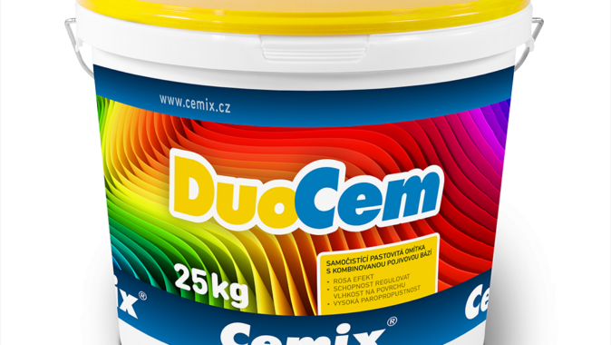 Nová generace tenkovrstvé fasádní omítky DuoCem od značky Cemix se díky svému složení a povrchu dokáže úspěšně vyrovnat s nepříznivými klimatickými vlivy, poradí si se znečištěným ovzduším a díky samočisticí schopnosti si uchovává dlouhodobě svoji barevnost.