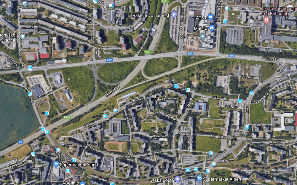se nachází mezi ulicemi Osová, Jihlavská a Labská v brněnské městské