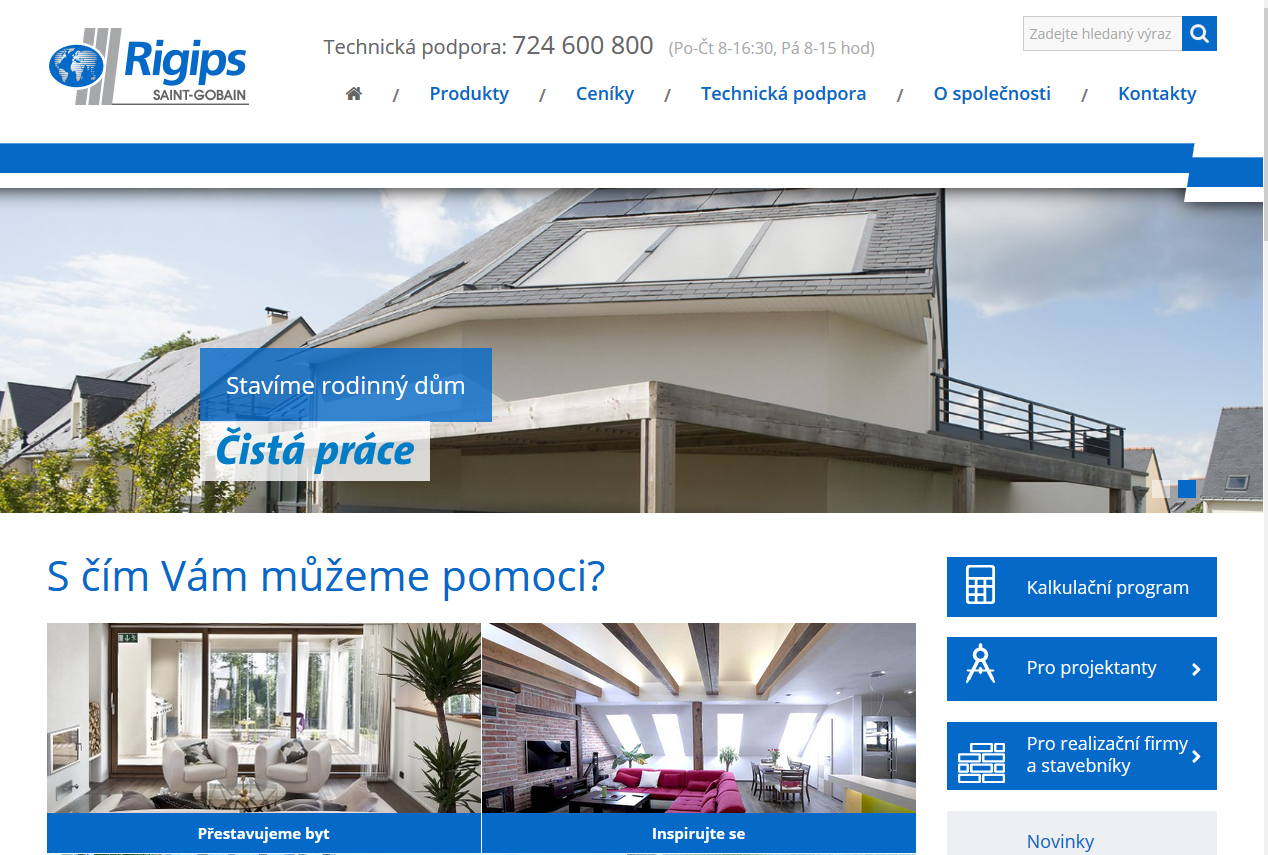 Firma Saint-Gobain Construction Products CZ, a. s., Divize Rigips, spustila nové internetové stránky www.rigips.cz.  Při jejich tvorbě se řídila současnými trendy v internetové grafice, založenými na čistém designu s minimem textu a s maximálním využitím obrázků a videí.