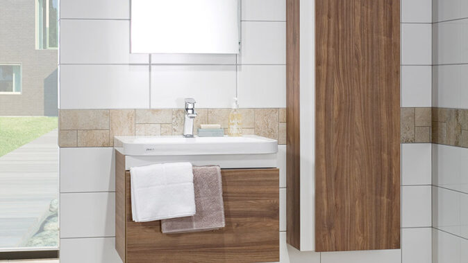 Zkosené hrany kontrastují tón v tónu nebo barevně. Série Via, RAKO.