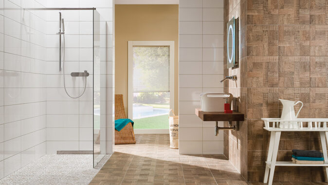 tvoří nosnou část série. Na základních barvách obkládaček 20×60 cm je