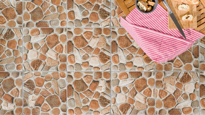 podlahovou dekoraci. Rustikální design dlažby je vhodný pro kombinace