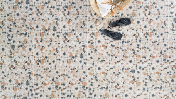 dlaždic Pebbles Vás zaujme nejen barevností, reliéfní strukturou, ale