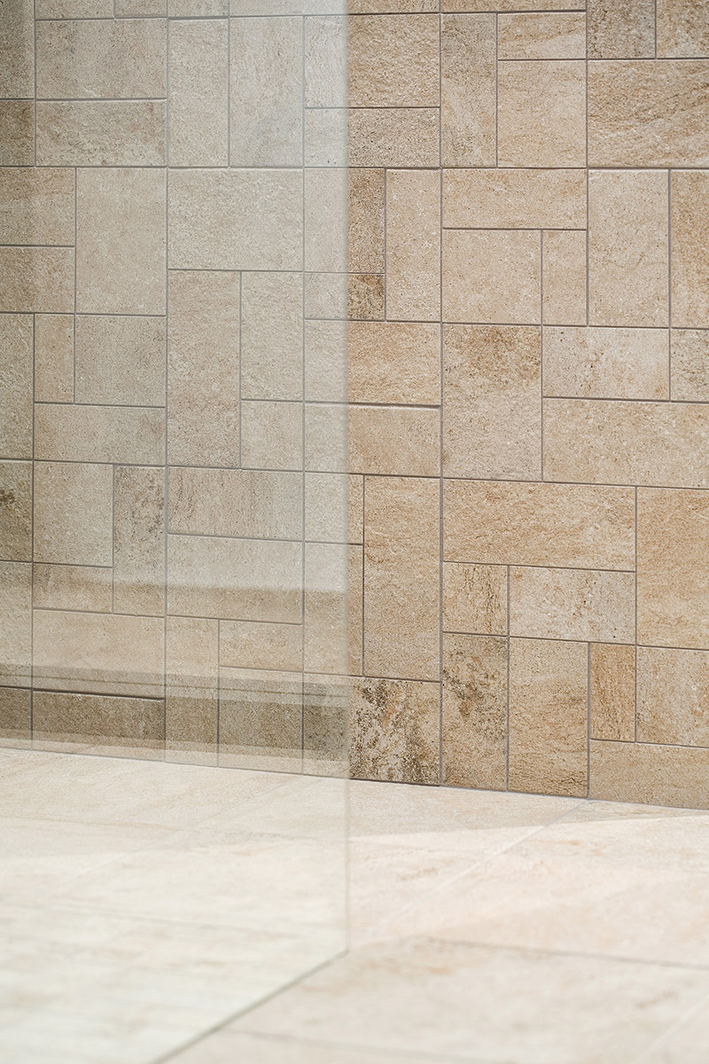 a kamenné“ obklady v keramickém provedení pronikly nejen do koupelny,