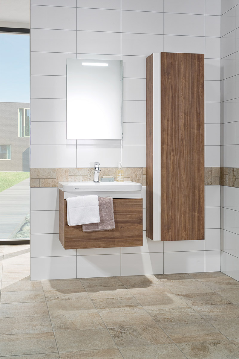 Zkosené hrany kontrastují tón v tónu nebo barevně. Série Via, RAKO.