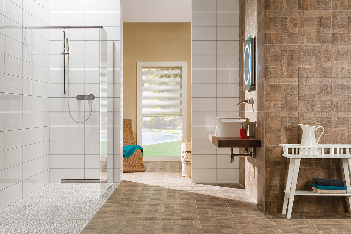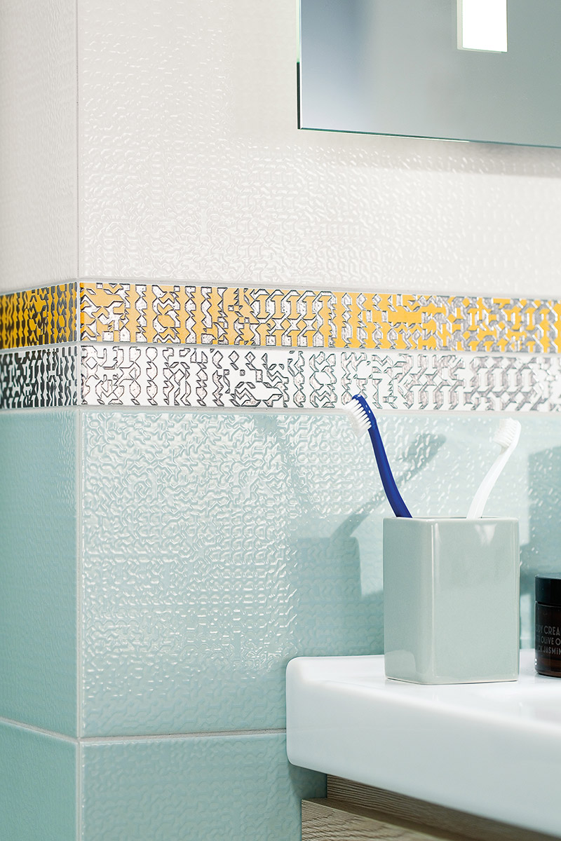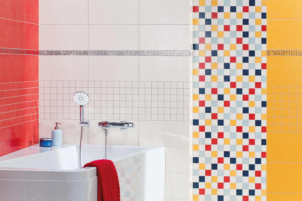tvoří nosnou část série. Na základních barvách obkládaček 20×60 cm je