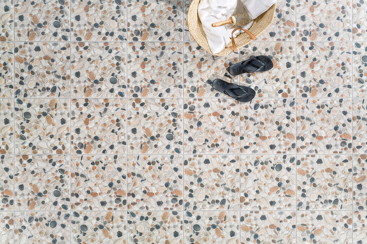 dlaždic Pebbles Vás zaujme nejen barevností, reliéfní strukturou, ale