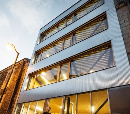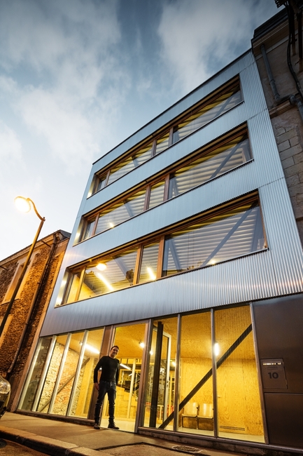 Rodinná firma BDN Bardage se sídlem v městečku Lohéac a v čele s Didierem Bougeardem spolupracuje s mnohými světoznámými architekty, včetně DLW v západní Francii. Již dvacet let se specializuje na fasádní a střešní krytiny a vnější izolace. Když François Dussaux pro budovu na Rue Marmontel navrhnul lisovaný ZACKEN PROFIL, byl to pro Didiera Bougearda zcela nový materiál. Rychle se s ním ale seznámil. Dojem na něj udělal nejenom materiál samotný, ale rovněž opora ze strany výrobce. Rychlé zaškolení a technická podpora při řešení detailů přímo na stavbě stavební práce urychlily a zjednodušily. To Didier Bougeard ocenil také proto, že v úzké ulici nebylo mnoho prostoru pro dlouhé zábory. Výsledná nekomplikovaná a rychlá montáž pomocí speciálních posuvných příchytek PREFA na podkladní kovovou konstrukci vše značně zjednodušila. Navíc se mu líbí cik-cak design fasádního profilu s neustále se měnící hrou světla. Po dobré spolupráci s DLW architekty a se společností PREFA Aluminiumpriodukte bude s hliníkem pracovat i nadále.