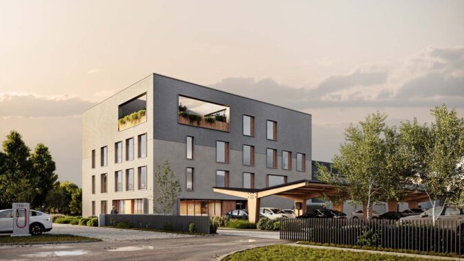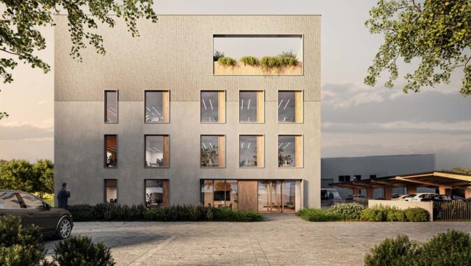 Architekti Studia Perspektiv navrhli centrálu společností GoPay a TERMS nedaleko Českých Budějovic. Projekt administrativní budovy a úpravy areálu rodinného podnikání se řídí principy udržitelnosti, potřebami zaměstnanců a požadavkem na nenáročnou údržbu. Novostavbu architekti pojali jako pasivní čtyřpatrovou dřevostavbu, jež výškou dosahuje povoleného limitu pro tento typ budov u nás, čímž se zařadí mezi nejvyšší v Česku. Areál koncipovali tak, aby v něm klient mohl uplatnit svůj zájem o vývoj technologií a získávání i uchovávání čisté energie. V souladu s tím bude provoz objektu čerpat z obnovitelných zdrojů. Kromě kultivace okolí se komplex také částečně otevře veřejnosti a poslouží regionu, například řidičům elektromobilů, kteří si zde budou moci dobít své stroje. Začátek realizace je plánován na podzim roku 2020.